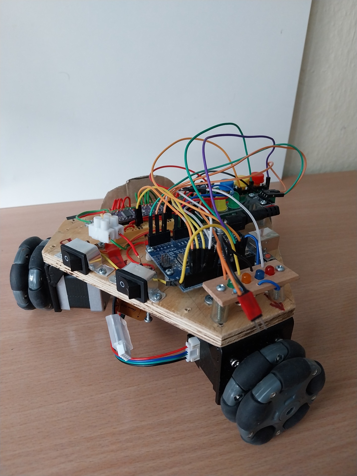 Všesměrová (OMNI) kola jsou poháněna krokovými motory. Speciální kola tohoto typu umožňují pohyb v libovolném směru (v libovolném úhlu ve vztahu k přímému směru). Pohyb modelu je výsledkem rotace všech tří kol, přičemž výsledný směr pohybu je dán směrem rotace a rychlostí otáčení jednotlivých kol. Hlavní úlohou řídícího programu modelu je tak výpočet směru a rychlosti otáčení tří kol v závislosti na požadovaném směru (úhlu) pohybu modelu.